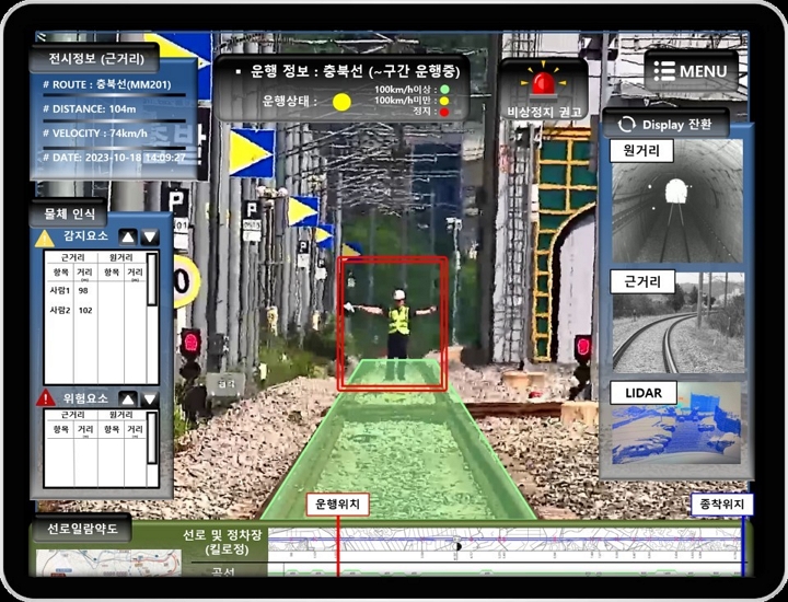 한국-이스라엘 산업연구개발재단(KORIL-RDF) 지원 국제공동 연구과제로 개발한 이 시스템은 VISION과 LiDAR 두가지 광학센서를 융합, 주야간 열차주행 중 선로변에 열차사고 및 탈선을 야기할 수 있는 선로변 작업자와 지장물을 사전 검지해 기관사에게 미리 경보해주는 시스템이다.