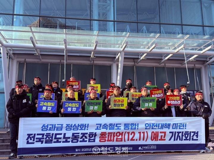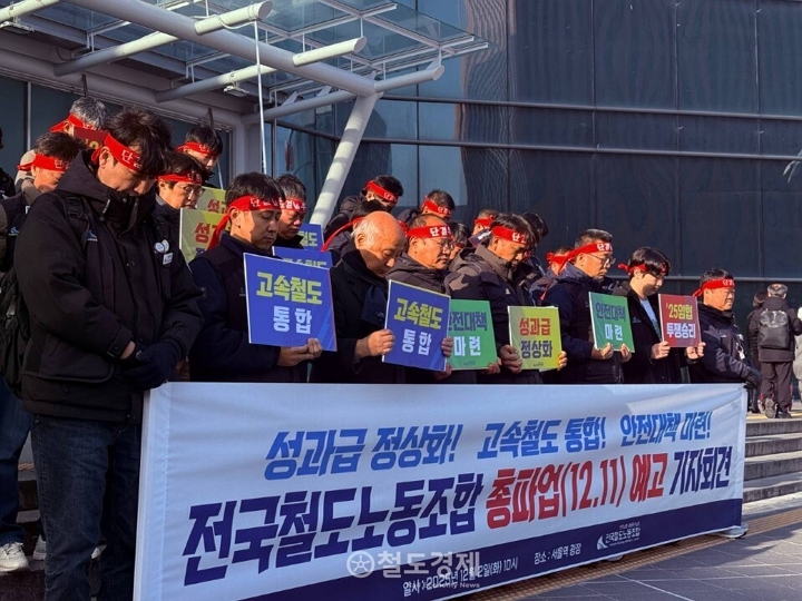 노조는 2일 오전 10시 서울역 동쪽 광장에서 '총파업 예고 기자회견'을 열고, 정부에 성과급 정상화를 비롯, 고속철도 통합과 안전대책 마련을 요구했다.