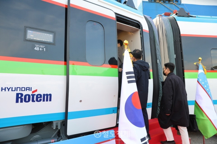 또 "우즈벡 고속열차는 양국의 협력과 우정을 상징하는 결과물"이라며 "향후 우즈벡 주요 도시를 연결하는 핵심 여객 노선에 투입돼 이동 시간을 단축하고, 지역 간 접근성을 높여 국가교통 인프라 현대화에 기여할 것"이라고 말했다.