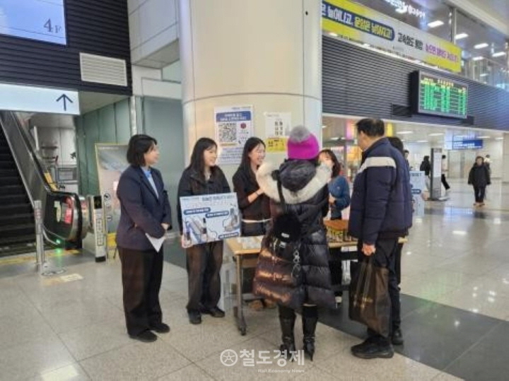 대전역 맞이방에서 대전역 직원과 프로젝트 일경험 프로그램 참여 학생들이 캠페인을 진행하고 있다. / 사진=코레일 대전충남본부