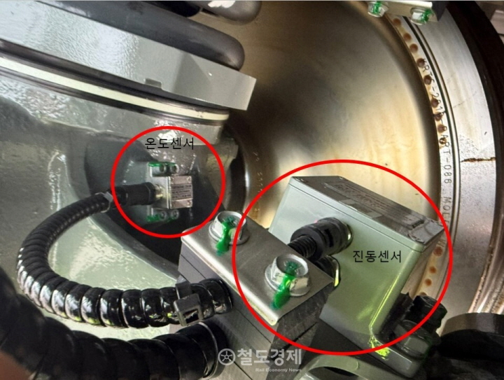 KTX-이음에 글로비즈 CBM 시스템을 장착한 모습. 액슬베어링의 온도와 진동을 실시간 모니터링해 이상 징후를 조기 감지하는 데 초점을 맞추고 있다. / 사진=글로비즈