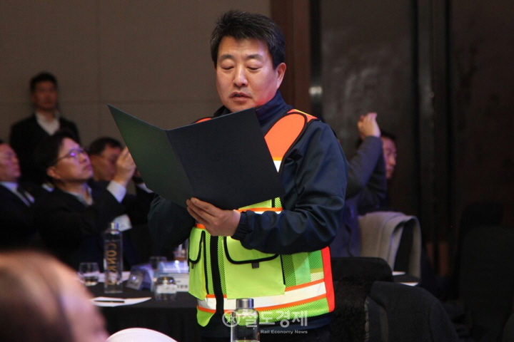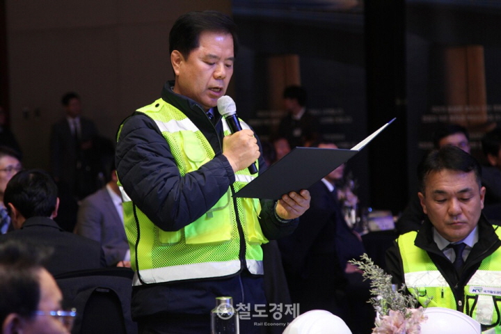 이호룡 국가철도공단 안전계획처장이 안전 실천 결의문을 낭독하고 있다. 2026.1.22 / 철도경제