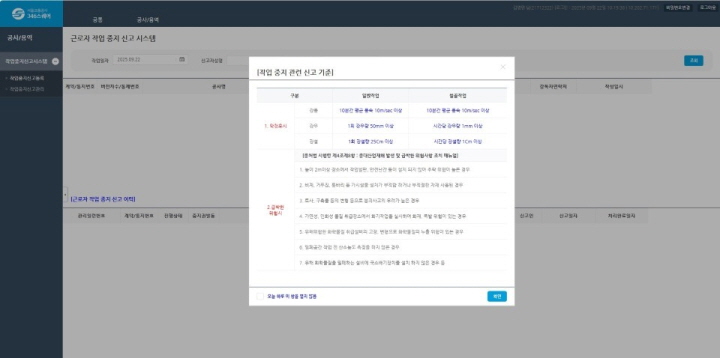 작업중지 신고시스템 구축, 근로자 안전 고보장