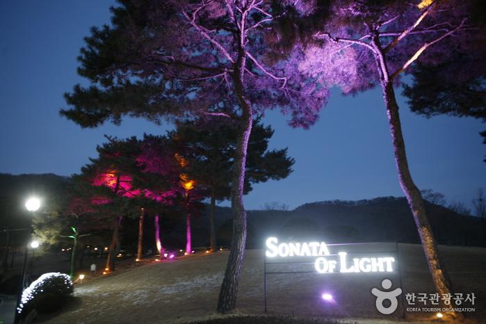 소나타오브라이트는 2018년 12월에 문을 열었다. 빛의 잔치가 벌어지는 주요 무대는 오크밸리의 숲 산책로인 숨길을 재구성한 곳이다. 마운틴파크에 조성된 오크밸리 조각공원을 지나면 숨길이 이어진다. 소나타오브라이트 관람은 해가 질 무렵, 조각공원 산책과 함께 시작하면 좋다. 공원에는 예술미 넘치는 조각 작품이 오솔길 따라 전시돼 분위기를 돋운다. 숨길 산책로는 낮에 무료 개방한다.