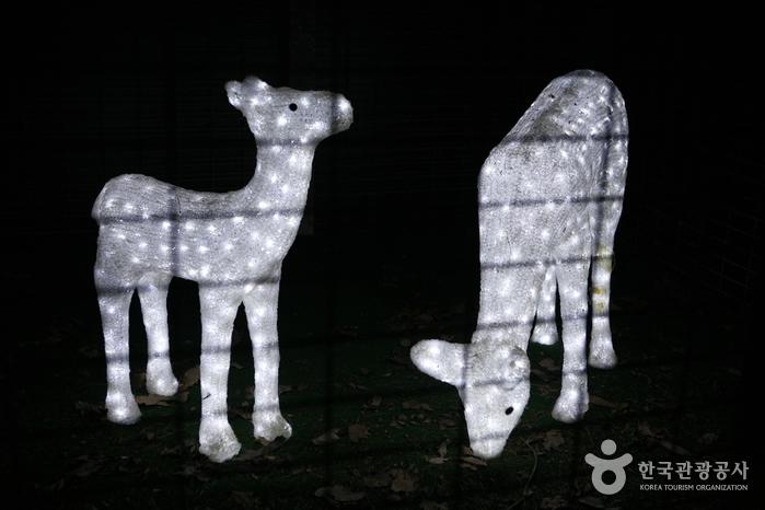 야간 산책은 숲속의 오케스트라에서 절정으로 치닫는다. 숲속의 오케스트라는 숲에 투사된 빛을 이용해 화려한 입체 무대가 펼쳐지는 공간이다. 음악이 시작되고 빛이 내려앉으면 꽃이 피고, 사슴이 뛰놀고, 고래가 헤엄치는 환상적인 영상이 나타난다. 디즈니 애니메이션 〈겨울왕국〉에 삽입된 ‘Let it go’와 비발디의 ‘사계―겨울’을 결합해 편곡한 선율이 흐른다. 잠시 걸음을 멈추고 오케스트라가 끝날 때까지 시간을 보내도 좋다.