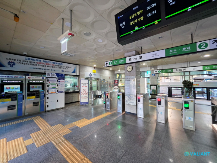 성수 방면 열차를 이용하기 위해서는 육교를 이용하여 반대편 승강장으로 건너가야 합니다.