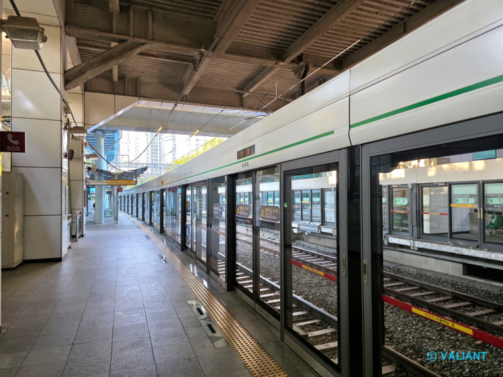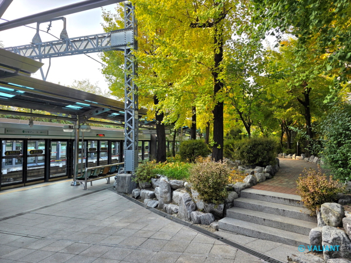 ▲신답역의 가장 큰 특징이라면 역사 내 승강장 옆에 공원이 조성되어 있다는 점입니다.