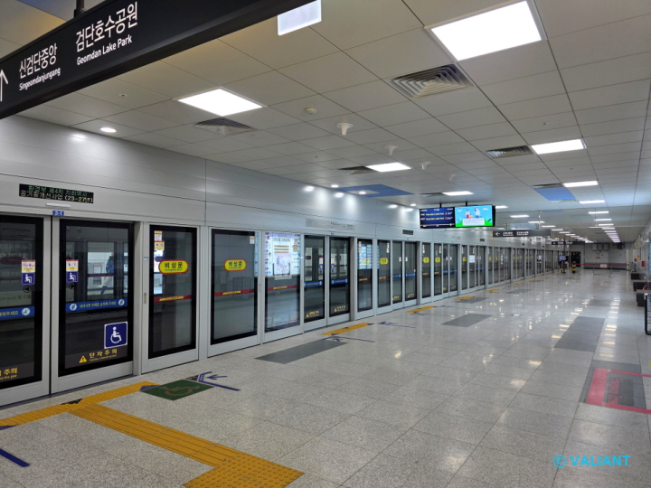 ▲ 쭉 뻗은 직선 승강장으로, 당연히 스크린도어를 완비하고 있고요.
