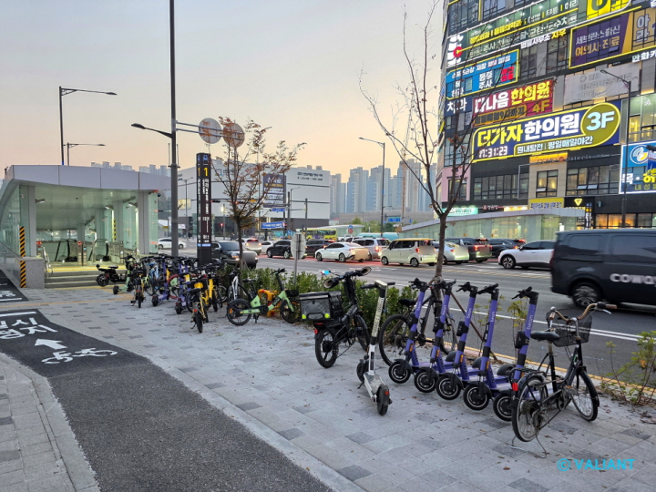 검단신도시도 마찬가지일지라 역 출입구 앞에 다양한 PM 장치들이 방치되어 있었습니다.