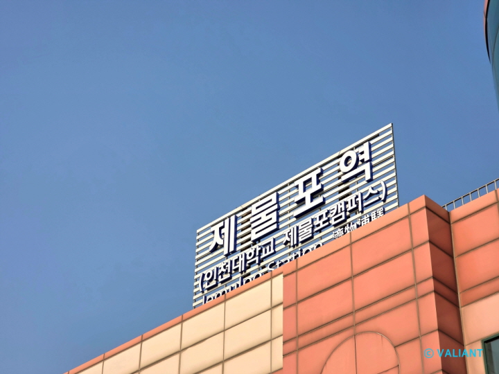 ▲최근 새롭게 교체된 제물포역 역사 외부 역명판.