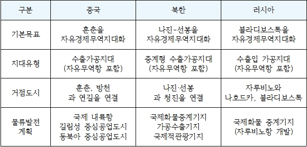 중국의 동북3성 거점 단동역과 훈춘역 1. 들어가며 최근 남북철도연결과 이를 통한 대륙철도와의 연계가능성에 대한 논의가 활발하게 진행되고 있다. 한반도를 통해 대륙으로 철도가 연결되어 운행할 경우 만나는 것이 중국과 러시아인데 경의선의 경우는 신의주를 통해 중국 단동으로 연결된다. 경원선은 함경선을 통해 중국과 러시아로 연결되는데 중국의 경우 거점역이 훈춘역이다. 본 고에서는 이러한 시사적인 측면을 고려해서 중국철도의 현황과 함께 단동과 훈춘역을 집중 조명해 보고자 한다 2. 중국의 철도현황 중국철도는 1876년 개통 이후 국민경제의 대동맥으로 중국교통의 주도적 위치를 차지하여 왔다. 그러나 시장경제로의 변화와 타교통수단의 급격한 발전에 따라 1990년 이후 2000년까지 철도수송 분담률이 떨어지는 추세를 보여 왔으나, 2003년을 기점으로 중장기 철도망 시설확충계획 등 철도발전전략추진 및 경제성장에 따라 철도수송량이 증가하고 있다. 철도영업거리는 2015년 기준으로 121,000km, 2009년 기준으로 여객수송인원은 14.62억명, 화물수송량은 33.04억 톤이며, 철도차량은 총 671,395량으로 화차가 603,082량, 객차 49,355량, 기관차 18,922량이다. 중국철도는 동서 5,400km, 남북 5,200km의 광대한 면적을 사회적으로 통합시키고 경제적으로 결속시키는 기능을 수행하고 있는데, 중국의 철도망은 남북과 동서로 8종8횡(八縱八橫)의 주간선망으로 이루어져 있다. 주요 거점은 베이징(北京)과 광저우(廣州)를 중심으로 이루어지고 있다. [중국의 주요 철도망] 8종(八縱) . 허브 : 베이징 . 주요노선 : 베이징-하얼빈 노선, 동부연해 노선(선양-광저우), 베이징-상하이 노선, 베이징-지우롱 노선, 베이징-광저우 노선, 다통-잔쟝 노선, 빠오터우-류저우 노선, 란저우-쿤밍 노선 8횡(八橫) . 허브 : 광저우 . 주요노선 : 베이징-란저우, 석탄운송 북노선, 석탄운송남노선, 대륙연계 노선(롄윈강-아라산코우), 난징-시안 노선, 연강(상하이- 충칭), 상하이-쿤밍 노선, 서남출해 노선(쿤밍-진쟝) (주 : 중국 “중장기 철도망계획”을 기초로 재작성.) 중국정부는 2004년 1월 『중장기 철도망계획』을 발표하였는데, 이 계획에는 ‘8종 8횡’의 주간선을 강화하고, 2020년까지 전국철도 총연장 15만km, 베이징~상하이 노선을 포함한 ‘4종 4횡 여객운송전용 고속철도 건설계획’이 핵심내용이다. 이에 따라 ‘10차 5개년 계획’의 2005년까지 총 영업연장 7.5만km, 복선화 2.5만km, 전철화 2만km로 시설을 확장하고, 2010년까지 베이징(北京)~상하이(上海) 고속철도를 완공하였고, 시안(西安)~안캉(安康)/난장(南腸)철도, 티베트(西藏)진입철도 등을 완성하였다. 그리고 2020년까지 롄윈강(連云港)~란저우(蘭州)~우르무치(烏魯木齊)철도, 청두(成都)~쿤밍(昆明)~난닝(南寧)철도를 신설/연장을 계획하고 이를 추진하고 있다. [중국 중장기 철도망계획] - 기본원칙 중장기 철도망 계획은 도로, 항공, 수운, 파이프라인 등 여타 계획과의 유기적 연계를 통하여 추진되며, 운송능력에 한계를 보고 있는 주요 간선은 여객과 화물 분리 운행, 경제 발달지역 및 인구밀집지역은 도시 간 고속여객운송 시스템 구축 계획이다. 또한, 지역 간 연계성 강화 및 철도 운송능력의 조화를 통해 여객 및 화물 운송 주요 적체 현상 해결 및 철도망의 밀도 제고와 운행면적 확대를 통해 지속적인 경제성장, 국토개발, 국방 등에 유리한 조건을 조성한다는 기본원칙을 정하고 있다. - 주요 내용 1) 철도의 영업연장 15만km(2020년), ‘4종4횡’ 고속 여객운송 전용선 구축 2) 신설철도 1.6만km 부설: 서북지역과 서남지역의 국경을 통과하는 국제철도망의 개조와 신설, 서부대개발 전략에 따른 새로운 철도망 구축 3) 기존철도망의 개량 및 요충지 건설: 석탄 등 에너지원의 운송능력 제고 . 기존노선 개량: 복선화 1.3만km, 전철화 1.6만km . 18개의 철도 컨테이너 전용터미널 건설(화물증가 대비) . 2단 적재 컨테이너 운송열차 운행 . 복합운송 허브지역: 베이징, 상하이, 광저우, 우한, 청두, 시안 - 주요 특징 1) 여객과 화물의 분리 운영(주요간선철도 포화상태) 2) 기존 철도노선망의 정비 및 신설(서부지역 중심) 3) 기존 철도의 운송능력 제고(기존 철도노선 복선화) 4) 철도관련 기술의 혁신 (주 : 중국 “중장기 철도망계획”을 기초로 재작성.) 이중 주요한 내용으로는 중국의 4종 4횡의 여객전용철도 건설계획이 있는데 이에 대한 구체적인 내용은 아래과 같으며 쉬저우(蘇州)~정저우(鄭州)~란저우(蘭州) 구간이 TCR노선에 해당된다고 하겠다. [4종 4횡 여객전용철도 건설 계획(총 11,940km)] ○ 4종 - 베이징-상하이(1,300km) : 징진에서 창장삼각주 연계 - 베이징-우한-광저우-선전(2,230km) : 화북지역과 화남지역 연계 - 베이징-선양-하얼빈(1,860km) : 동북지역과 관내지역 연계 - 항저우-닝보-푸저우-선전(1,600km) : 창장삼각주, 주장삼각주와 동남연해지역 연계 ○ 4횡 - 쉬저우-정저우-란저우(1,400km) : 서북지역과 화동지역을 연계(TCR구간) - 항저우-난창-창샤(880km) : 화중지역과 화동지역 연계 - 칭다오-스쟈쟝-타이위엔(770km) : 화북지역과 화동지역 연계 - 난징-우한-총칭-청두(1,900km) : 서남지역과 화동지역 연계 (