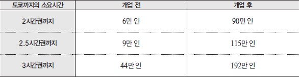 고속철도(7) 6. 신칸센 개통의 효과 신칸센 개통에 의해 도시간 소요시간이 대폭 단축되어, 어떤 지역으로부터 다른 지역 혹은 도시로 많은 사람이 보다 빠르게 이동이 가능하게 되었다. 예를 들면 나가노현과 군마현의 경계에는 교통상 매우 접근이 어려운 최고 구배 66.7‰ 우스이 고개(?氷峠)가 있어 보조기관차를 연결하고 분리시킬 필요가 있었기 때문에 도쿄~나가노 사이에 소요시간이 약 3시간이었다. 그런데 호쿠리쿠신칸센의 개통에 의해 소요시간은 이제까지의 반 이하인 1시간 19분으로 연결되게 되었고, 나가노 지역은 도쿄로부터 1일 생활권으로 바뀌었다. 호쿠리쿠신칸센은 또한 도카이도신칸센 등의 태평양의 주요 간선에 대해 대체 가능성 있는 노선으로서의 역할이 있다. 신칸센 개통에 의해 철도 이용자는 어느 정도 증가했을까? [표 3-13]은 개통구간별 수송인원의 변화와 개통 후의 효과가 확인이 가능하다. 특히 통근 통학의 철도 이용이 크게 증가하였고 정기이용객이 매년 증가 경향이 있다. 그런데 신칸센 개통 효과는 개통구간만으로 한정되어 있을까? [표 3-14]에서는 개통구간을 포함하여 주요한 도시간 이용실적의 변화를 교통기관별로 표시한 것이다. 이동거리 700km를 넘는 오사카~구마모토나 오사카~가고시마, 도쿄~아오모리에서 철도이용실적이 크게 증가하여 개통 효과가 광범위하다는 것을 알 수 있다. 또한 전체 교통량도 신칸센 개통 후에 증가했기 때문에 신칸센의 개통에 의해 단순히 항공이나 버스로부터 승객이 철도로 이전하여 분담률이 증가했을 뿐만 아니라 새로운 여행수요가 창출되었다고 생각할 수 있다. 이는 운수정책연구기구의 신칸센 이용자 설문조사 결과를 통해 확인할 수 있다(철도운수기구, 2008년, 36페이지). 즉, 1998년 11월에 실시된 앙케이트 조사에 의하면 호쿠리쿠신칸센이 개통하지 않았다면 여행을 변경 혹은 이동하지 않았을 것이라고 대답한 승객이 전체의 20% 정도를 차지하고 있다. [표 3-13] 건설중인 정비신칸센 호쿠리쿠신칸센(다카자키~나가노 간) 개업 ![]() 도호쿠신칸센(하치노헤~신아오모리) 개업 ![]() 규슈신칸센(하카타~신야쓰시로) 개업 ![]() *출처 : 철도건설운수시설정비지원기구(2015), '철도운수기구 팸플릿', pp.12~15 [표 3-14] 신칸센 개통 전후 각 교통기관의 이용실적 ![]() 출처 : 철도건설운수시설정비지원기구(2015), '철도운수기구 팸플릿', pp.12~15 신칸센과 재래선의 직통운전을 하고 있는 미니 신칸센에서도 개업 효과가 인정되고 있다. 개통에 따라 환승 불편 해소나 속도 향상에 의해 야마가타신칸센(도쿄~야마가타 간)의 소요시간이 3시간 9분으로부터 2시간 27분으로, 아키타신칸센(도쿄~아키타)은 4시간 37분에서 3시간 49분으로 크게 단축되었다. 야마가타·아키타신칸센에서 열차의 탑승률은 평균 80~90%를 넘고 열차의 증차나 5~6량 편성을 7량 편성으로 하는 등 큰 성공을 거두었다. 신칸센의 개통과 함께 통행시간의 단축에 의해 1일 생활권화에 따라 숙박시설 수나 객실 수 감소가 염려되었지만 개통 후에 어느 노선에 있어서도 증가 경향이 있고 숙박을 동반한 여행객수도 증가하고 있다. 여기서 신칸센을 많은 사람이 이용하고 있는 이유를 생각해 보자. 신칸센은 여행시간이 대폭 단축되는 것 이외에 기후로 좌우되는 다른 교통수단과 비교해 겨울에도 정시성이 높고, 탑승의 번잡함이 없기 때문에 출발 직전에도 승차가 가능하다. 또한 대량수송이 가능하고 차내에서 쾌적성이 뛰어나며 다빈도의 열차운행 때문에 많은 승객이 이용하기 편리하다. 더욱이 신칸센은 환경 친화적인 교통수단으로 승객 1인을 1km 이동하는 데 배출하는 이산화탄소가 항공의 약 6분의 1, 자동차의 4분의 1 정도이다. 호쿠리쿠신칸센(나가노~가나자와) 개통과 함께 다른 교통수단으로부터 신칸센으로의 수요가 전이하는 것에 의해 기대되는 이산화탄소 배출량의 감소는 연간 약 10.4만 톤(약 13,000헥타르 분의 삼나무 이산화탄소 흡수량)으로 추산되고 있다(철도운수기구, 2012년, 48페이지). 신칸센은 일본인의 생활과 일본 사회를 어떻게 변화시켜왔는가? 신칸센은 이제까지 교류가 적었던 지역 간의 인적 교류의 활성화와 생활비가 싼 지역으로의 이주, 단신으로 부임하는 사람들의 집에서의 통근이 가능케 하는 등 사람들의 흐름과 생활패턴을 크게 변화시켰다. 또한 신칸센의 존재는 주민에게 거리나 지역에 대한 자랑이나 교류 기회 증가에 따른 만족도, 언제나 이용 가능한 안도감을 주고 있다. 이러한 신칸센은 생활패턴뿐만 아니라 선로 주변 주민의 사고까지 변화시켰다. 더욱이 신칸센의 높은 편리성은 선로 주변의 지가를 상승시켜 그 지역의 인구 유출을 억제하는 것에 머무르지 않고 지역 외부로부터의 전입이 기대되었다. 그런데 모든 신칸센이 통과하는 지역의 인구가 증가한 것이 아니고 감소하는 지역도 적지 않았다. 신칸센 정비의 단점으로 지역의 인구나 물자가 인근의 대도시권으로 흡수되는, 이른바 '빨대 현상'을 들 수 있다. 그런데 빨대 현상의 유무는 연구자에 따라 견해가 다르고 지역마다 다양한 영향 때문에 인구감소가 빨대 현상에 의한 것이라고 결