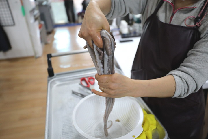깊은 바다에서 통발로 잡는 낙지와는 몸체가 매끄럽고 빛깔이 고운 편이며 식감 역시 차이가 있습니다.