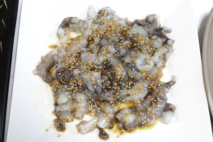 ▼사진) 산낙지를 참기름이나 마늘을 다진 소금에 찍어 먹는 낙지회(탕탕이)는 꾸물거리는 낙지다리를 씹을 때 입 안에 착 감기는 쫄깃한 식감이 오묘하고요.