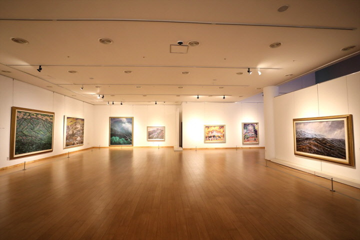 ▼사진) 오승우 미술관은 자연주의를 추구하지만 오히려 자연 자체보다는 자연에서의 감동을 야수처럼 거친 기법으로 표현한 한국 서양화의 원로 오승우 화백이 자신의 작품 '십장생도' 연작 60여 점을 비롯한 '한국의 산' 시리즈, '동양의 근원' 연작 등 30년 동안 보관해 왔던 179점과 미술관련 서적 500부, 화구 300여점을 무안군에 기증해서 설립했습니다.